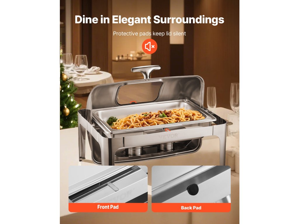 1. kérdés: Használható ez a forró és hideg ételekhez egyaránt? A1: Ezt a forró tálat kifejezetten az ételek melegen tartására tervezték. Bár ideális forró ételekhez, hideg ételekhez is használható, amennyiben azokat újramelegítés nélkül tárolja. A legjobb eredmény elérése érdekében javasoljuk, hogy forró ételekhez használja. 2. kérdés: Könnyen tisztítható a chafing dish? A2: Igen, a chafing dish tartós rozsdamentes acélból készült, ami a tisztítást gyerekjátékká teszi. Mind az ételtartály, mind a víztartály kivehető a könnyű mosás érdekében, a keret pedig minden használat után letörölhető. 3. kérdés: Használhatom ezt a serpenyőt a szabadban? A3: Teljes mértékben! Ez a chafing dish tökéletes beltéri és kültéri rendezvényekhez, például büfékhez, partikhoz vagy cateringhez. Csak győződjön meg róla, hogy biztonságos, stabil helyen használja, hogy megakadályozza a felborulást.
