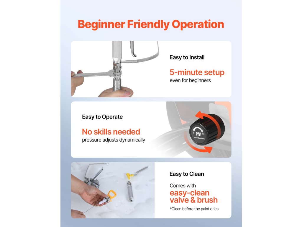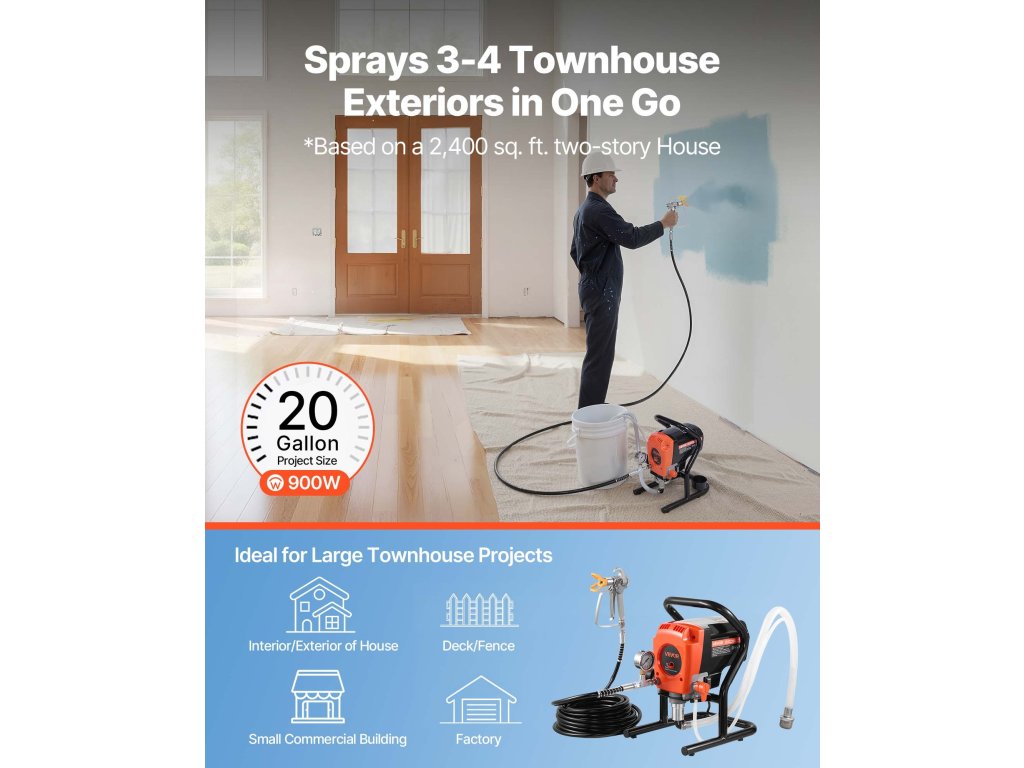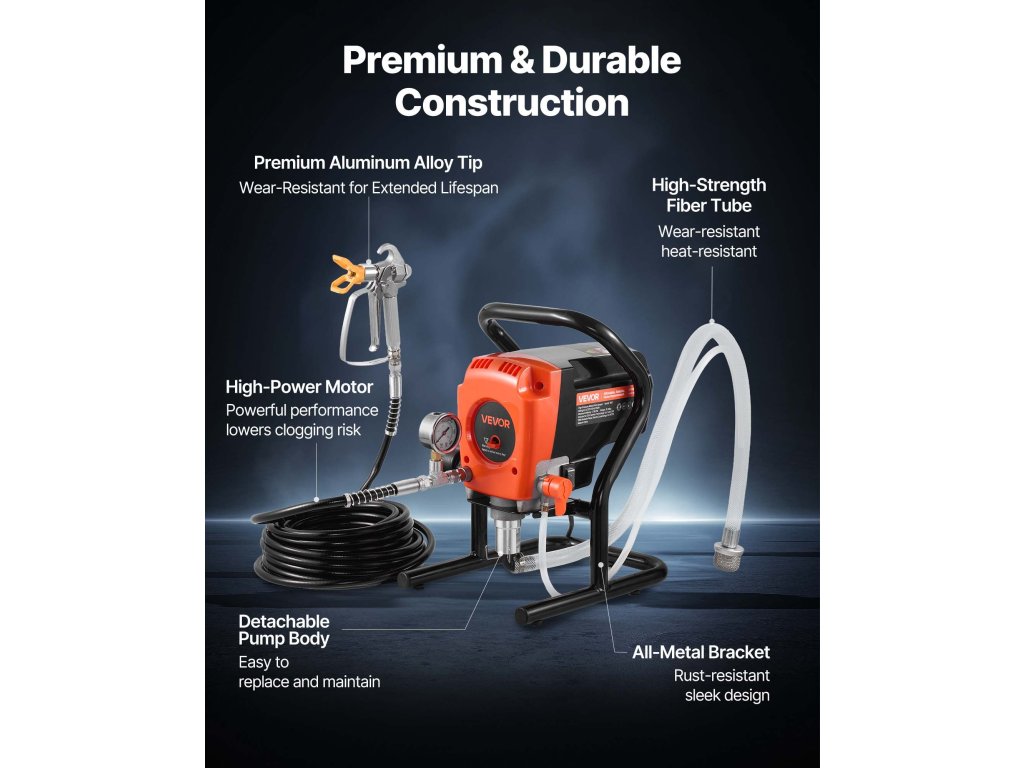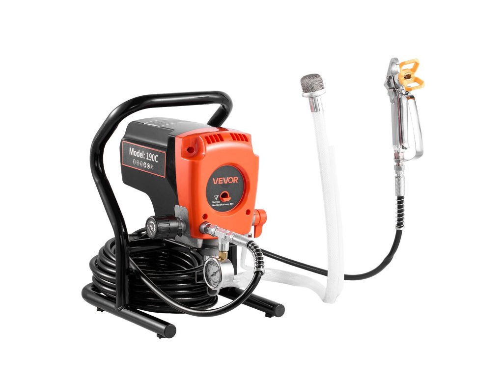900 W-os, 3300 PSI nyomású levegő nélküli szórópisztoly, tömlő, fúvókák, szórófej és ecset