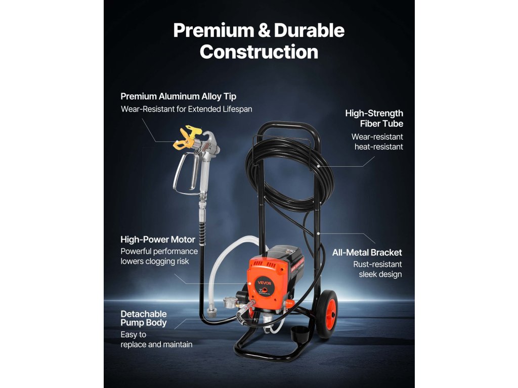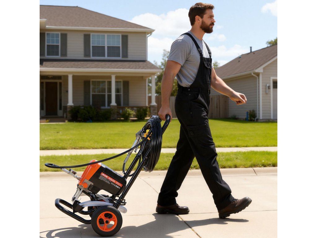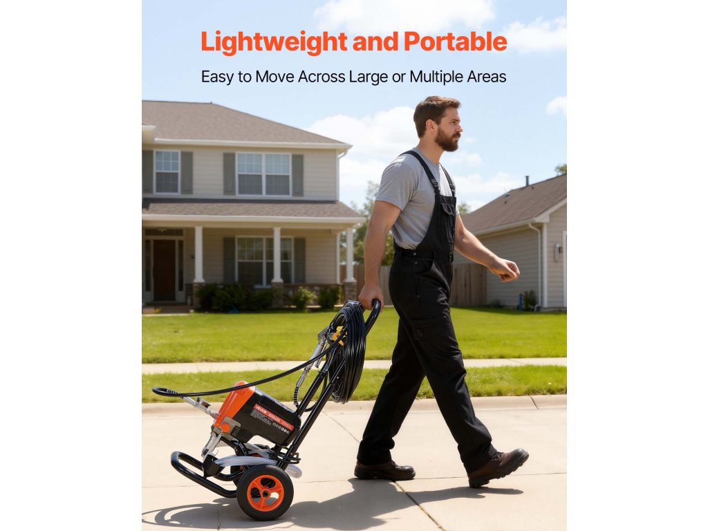 900 W-os, 3300 PSI-s légmentes szórópisztoly kocsival, tömlővel és fúvókákkal