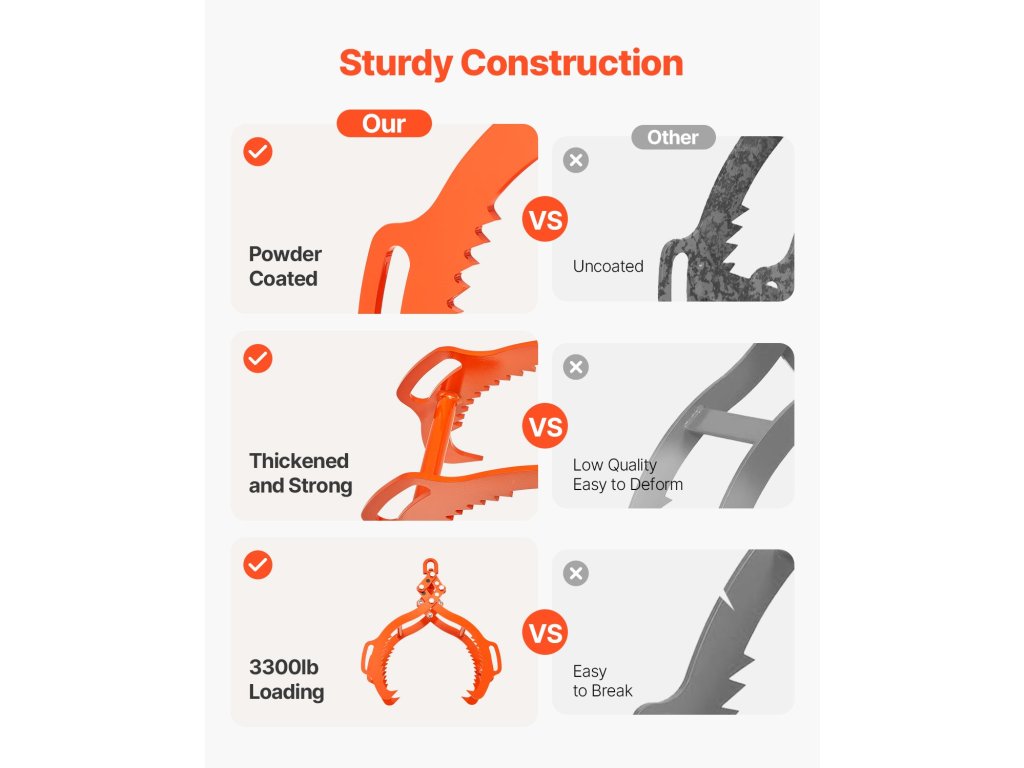 Ezek a saskarmos kialakítású fogók erős és biztonságos fogást biztosítanak, akár 3300 font terhelhetőséggel. Tartós kovácsolt acélból készülnek, és garantálják a biztonságot és a könnyű használatot. Számos járművel kompatibilisek, így ideálisak minden erdészeti munkához.