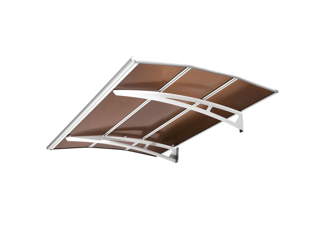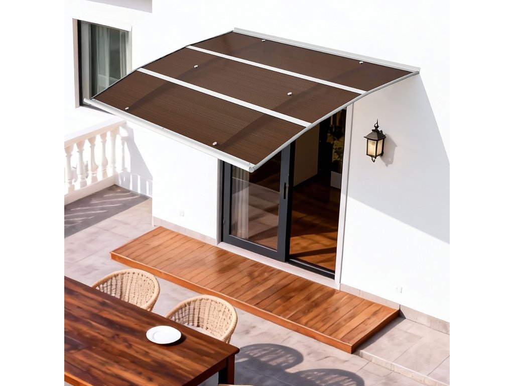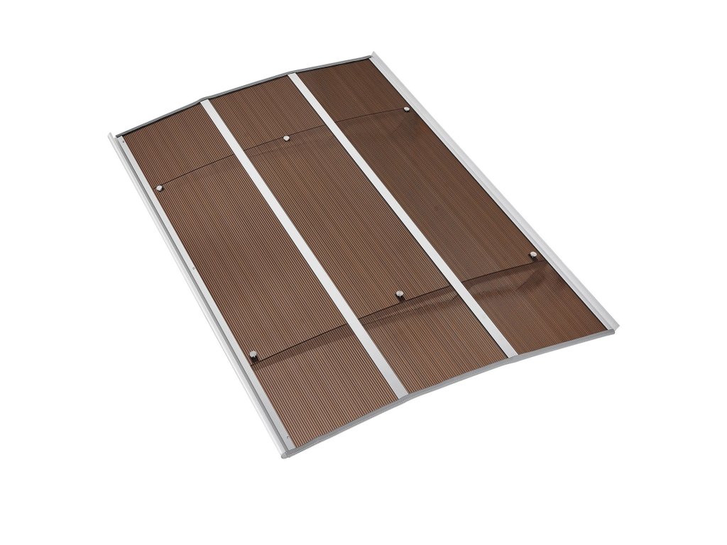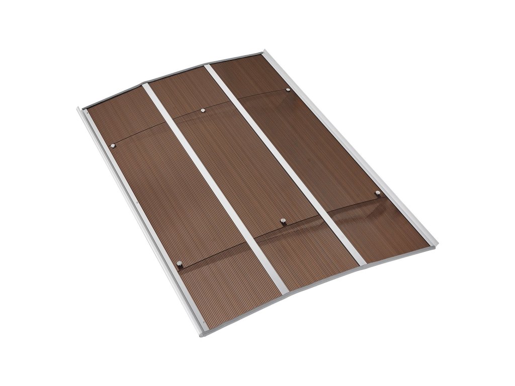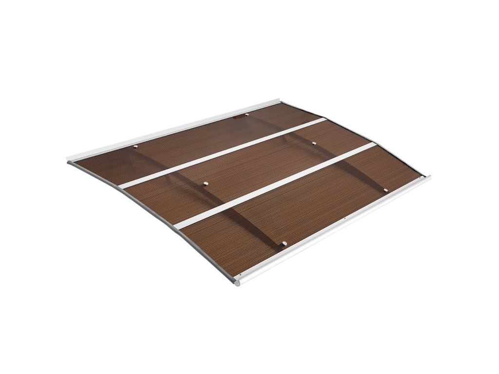 99×149 cm-es polikarbonát bejárati előtető lefolyóval és tartóval, barna