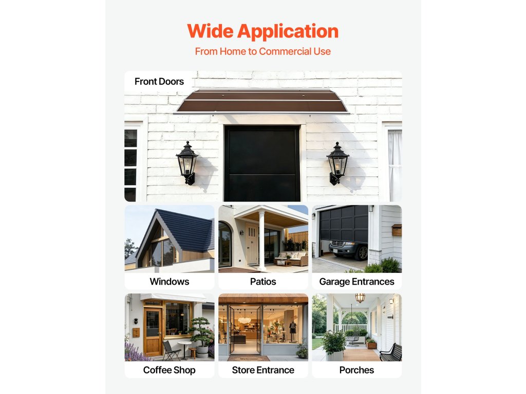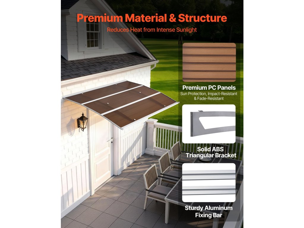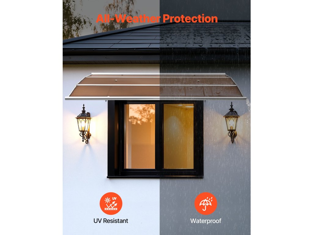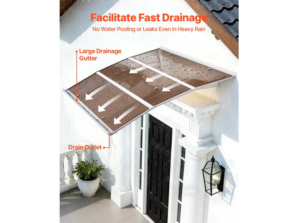Az ablakok és ajtók polikarbonát napellenzője megnövelt és továbbfejlesztett vízelvezető ereszcsatornával rendelkezik, amely hatékonyan vezeti el az esővizet a bejárattól. Segít megelőzni a csúszós felületeket, miközben egész évben megbízható időjárásvédelmi megoldást nyújt, tiszta, modern megjelenéssel.