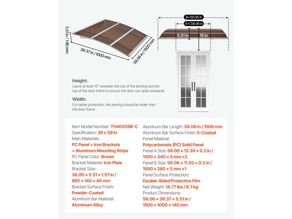 | Rozmer panelu B | 59,06 × 11,02 × 0,2 palca / 1500 × 280 × 5 mm ×1 |