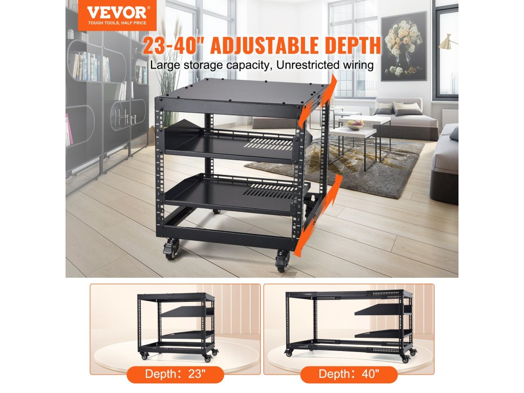 Nyitott keretű állványunk mélysége 23" és 40" között állítható, és falra szerelhető vagy szabadon álló. Élvezze a kiváló szellőzést, a könnyű kábelkezelést és a maximális helykihasználást. Az állvány mozgatása a görgős görgőknek köszönhetően gyerekjáték. Ideális kiskereskedelmi helyszínekre, irodákba és minden olyan területre, ahol korlátozott hely áll rendelkezésre.