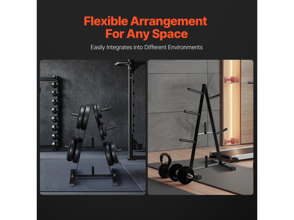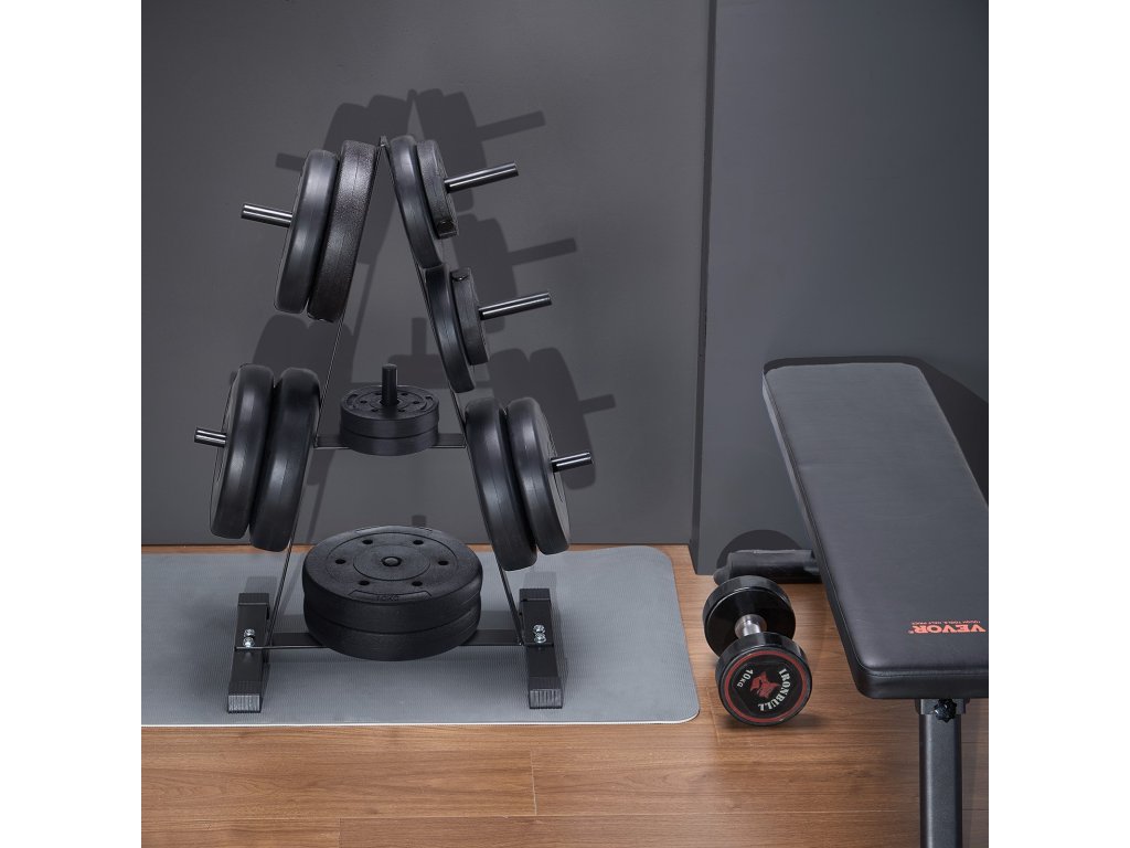 A stabil kialakítás minimalizálja az imbolygást, miközben könnyen befogadja mind a szabványos, mind a nagyobb terhelési lemezeket. Rendezett tárolást biztosít a különböző típusú lemezek számára, hogy megfeleljen a különböző edzési igényeknek.