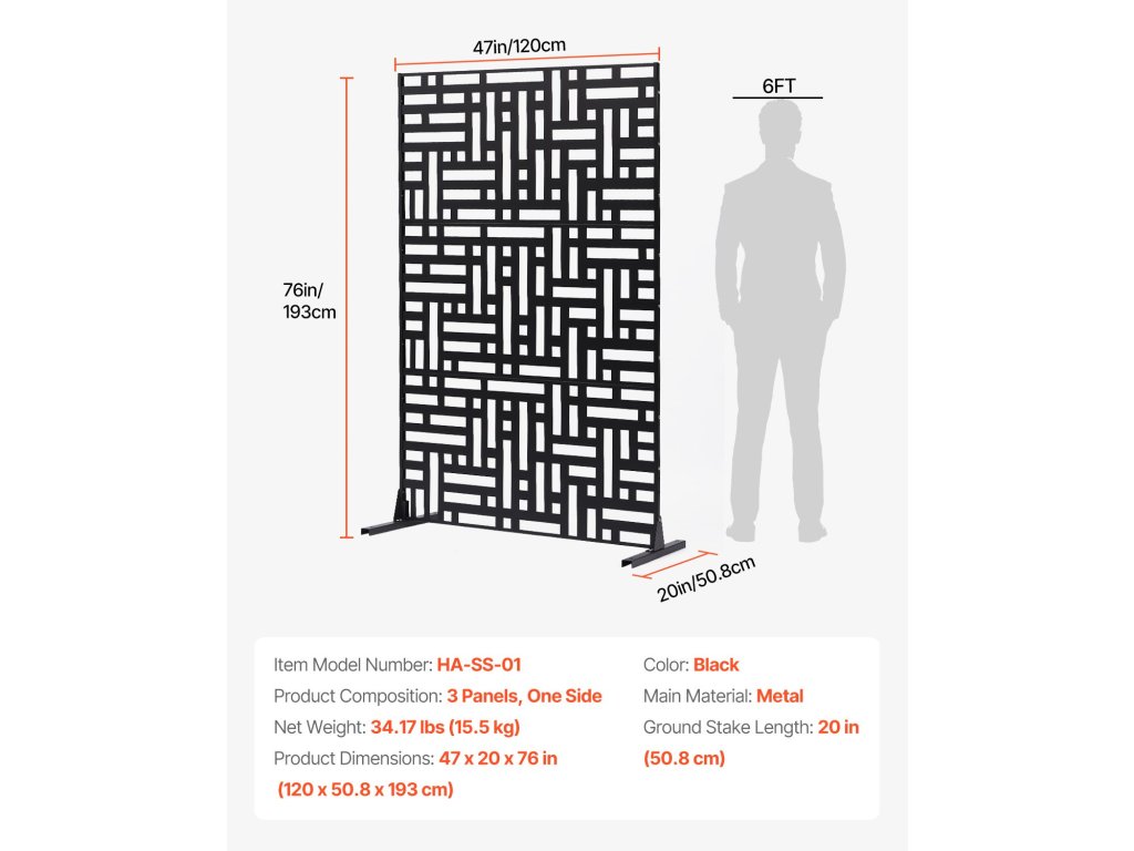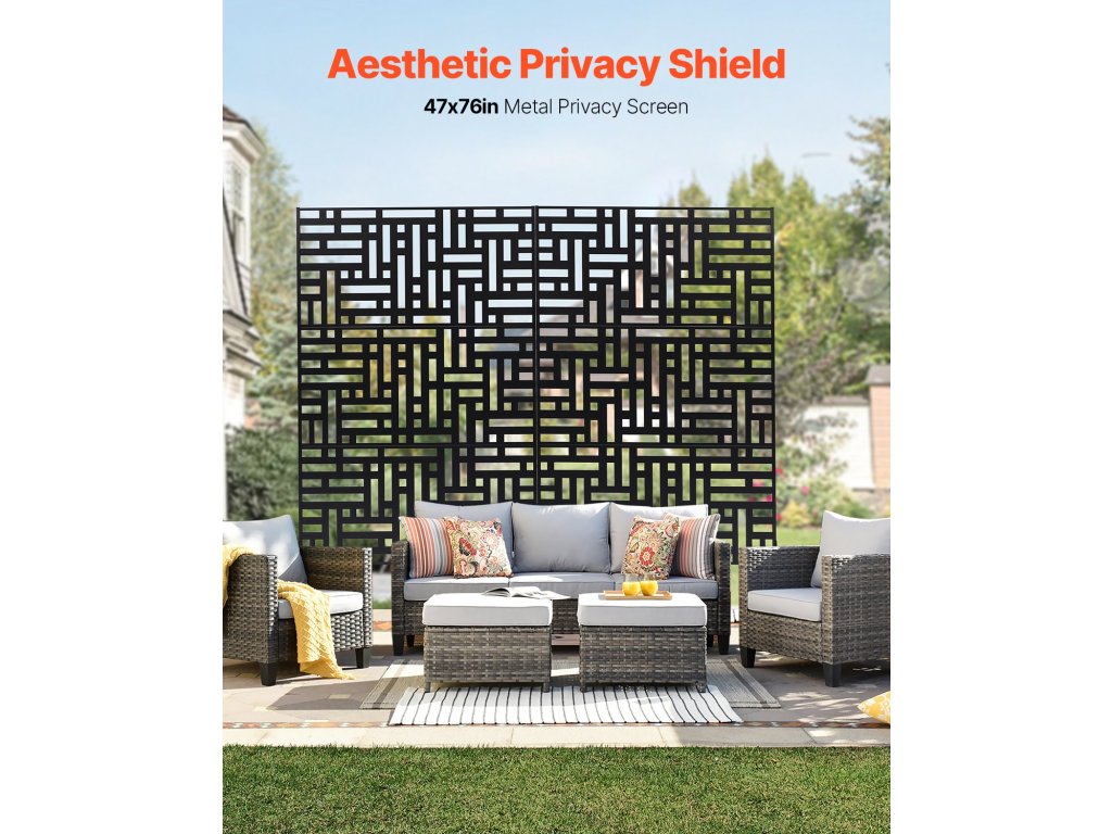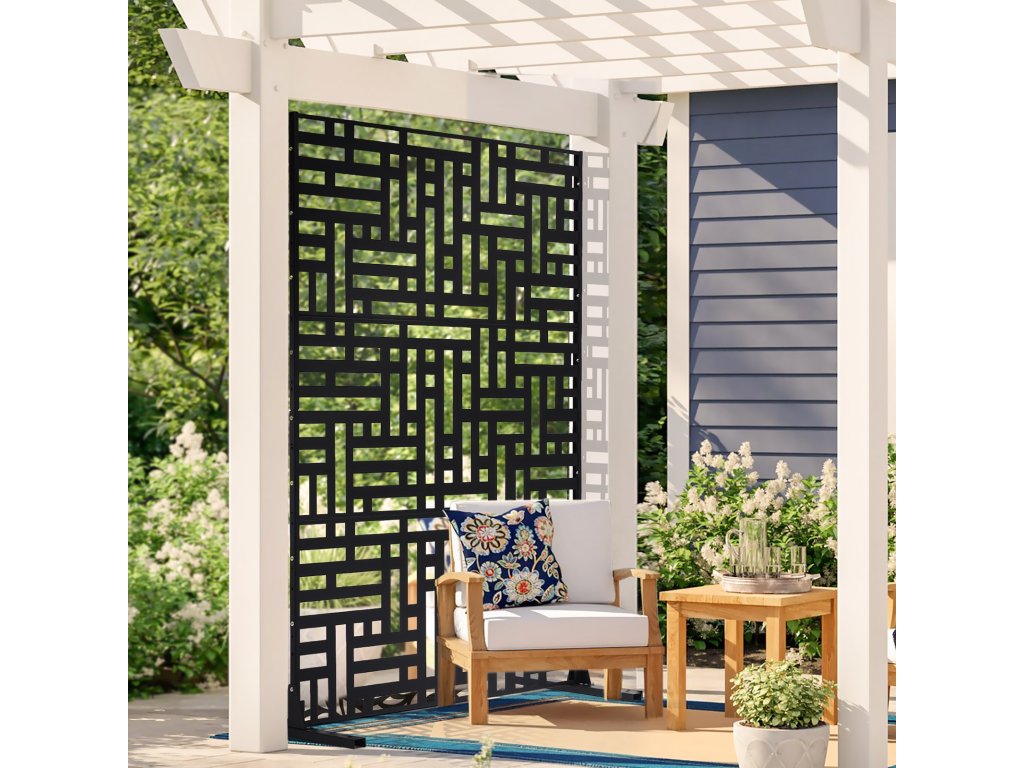 Ez a 47×76 hüvelykes fém adatvédelmi paraván korrózióálló és tartós, ideális hosszú távú kültéri használatra. Szélállósága miatt ideális kertekbe, teraszokra és udvarokra, ahol egyszerre nyújt magánéletet és stílust. Beltérben is használható a terek elválasztására, sokoldalú, elegáns elválasztást biztosítva.