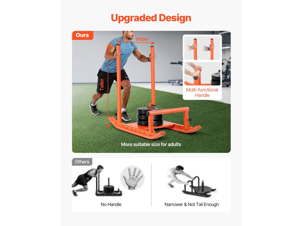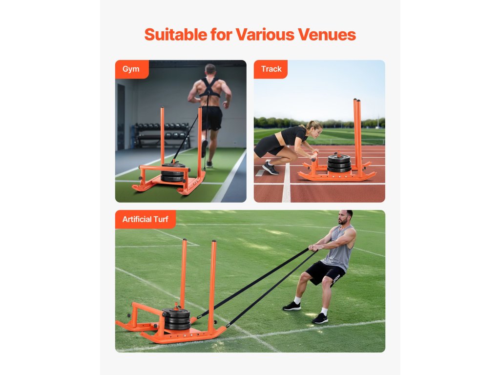 A többfunkciós ballasztszánkók ideálisak fű-, szőnyeg- vagy betonfelületeken való használatra. Növeli a teljesítményt, izmot épít, növeli az állóképességet és a sebességet, és könnyedén javítja az atlétikai képességeket.