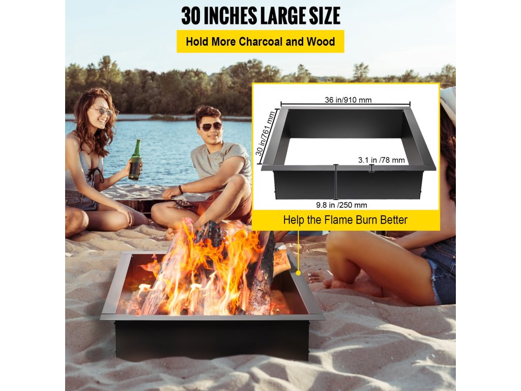 A nagyméretű, 30 x 30 hüvelykes négyzet alakú kandallógyűrű több szenet és fát tart el, így megoldja a gyakori szén hozzáadásának problémáját, és segíti a tűz növekedését.