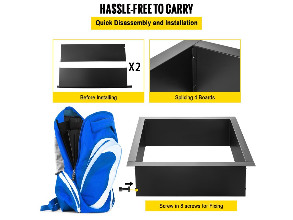 A kültéri tűzgyűrűk sokféleképpen használhatók, és könnyen szállíthatóak és tárolhatóak. Alkalmas kempingezéshez, horgászathoz vagy egyszerű grillezéshez a parkban vagy a hátsó udvarban.