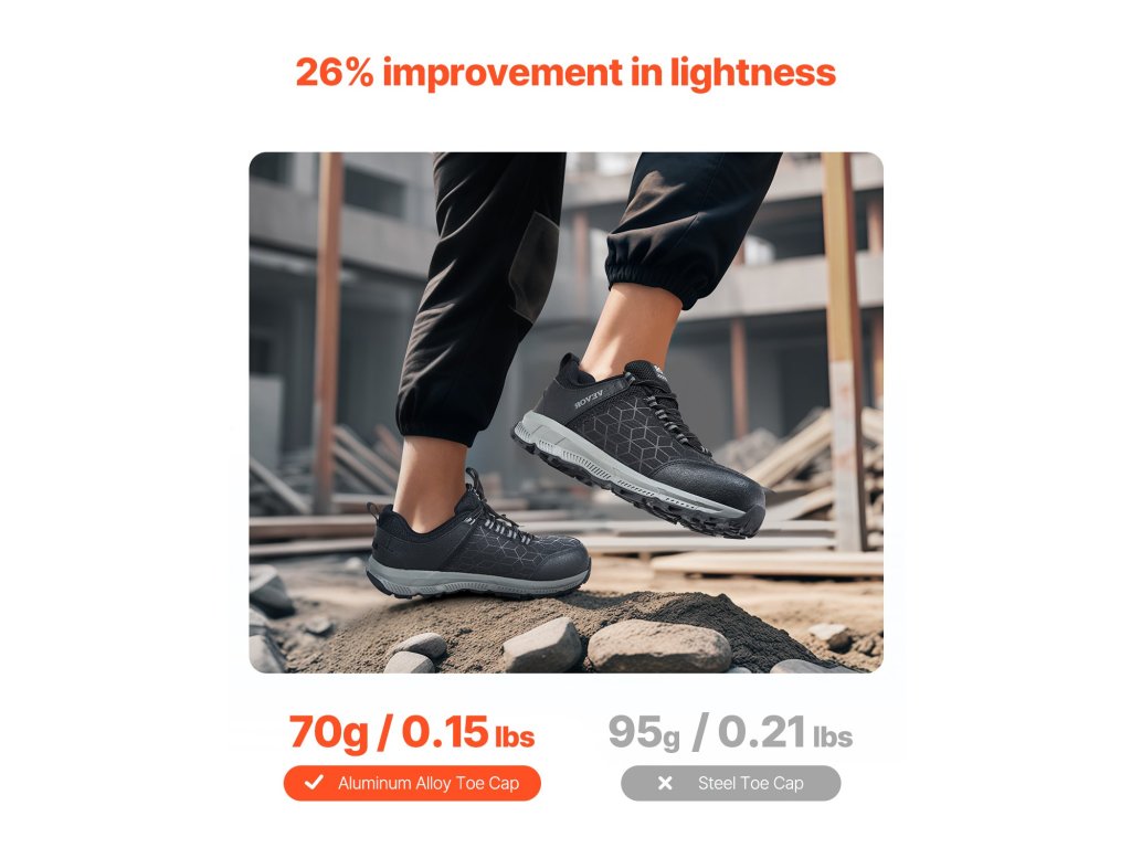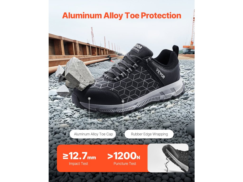 Biztonsági lábbelink teljes körű védelmet nyújtanak lábának az építőipari munkák során. Ütés- és átszúrásvizsgálatnak vetik alá őket, és úgy tervezték őket, hogy csúszás- és ütésállóak legyenek, megelőzve a felesleges baleseteket. A könnyű alumíniumötvözet anyag 26%-kal növeli a kényelmet.