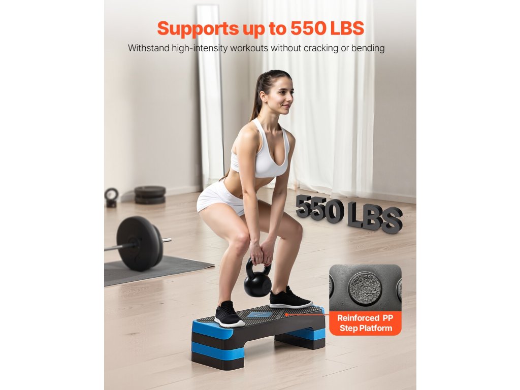 A megerősített PP lépcsőplatform repedés vagy elhajlás nélkül ellenáll a robbanásszerű ugrásoknak, súlyzóütéseknek és intenzív kardióedzéseknek. Sportolóknak épült, edzőtermek számára megbízható.