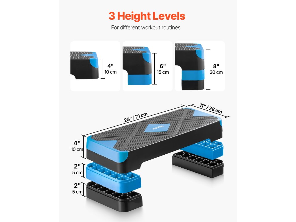 Aerobik lépcső 75 cm-es állítható magasságú, 4 hosszabbítóval, csúszásgátló, kék