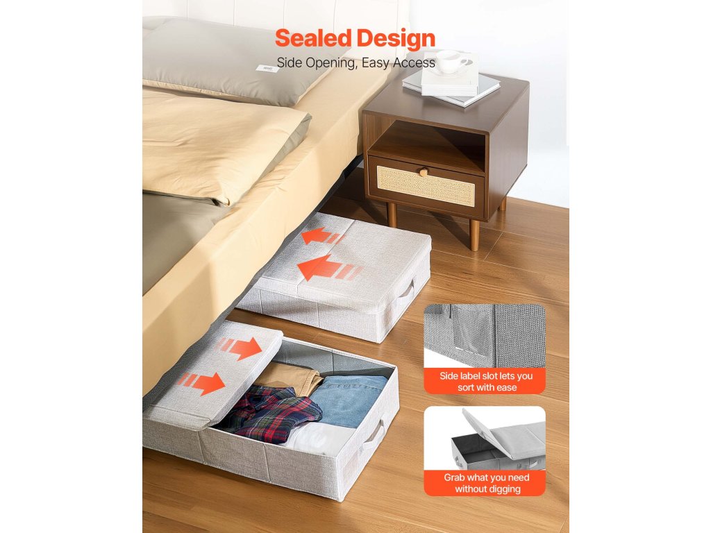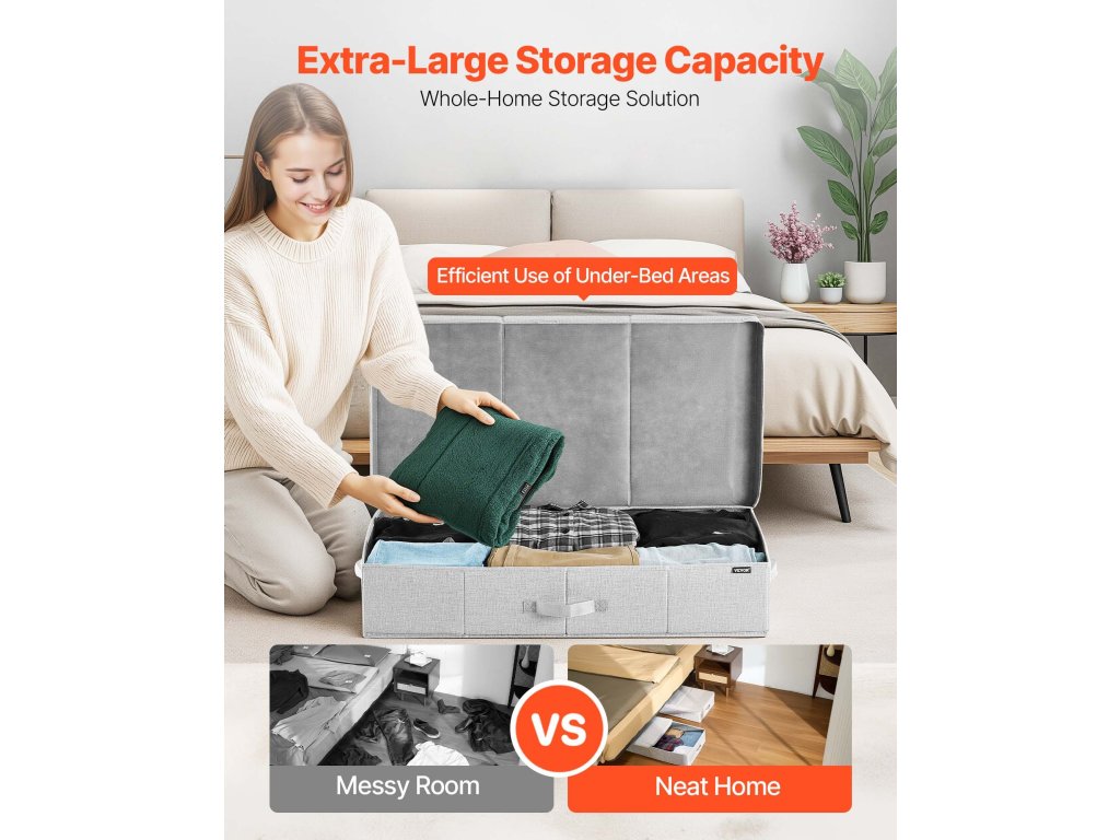 Ez az ágy alatti tároló elfér ágyak, kanapék, asztalok és bútorok alatt, és praktikus megoldást kínál a ruhák, cipők és játékok rendszerezésére.