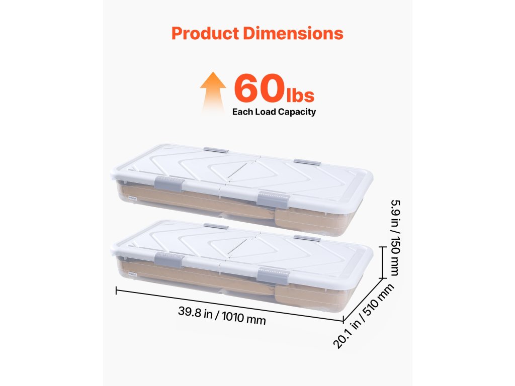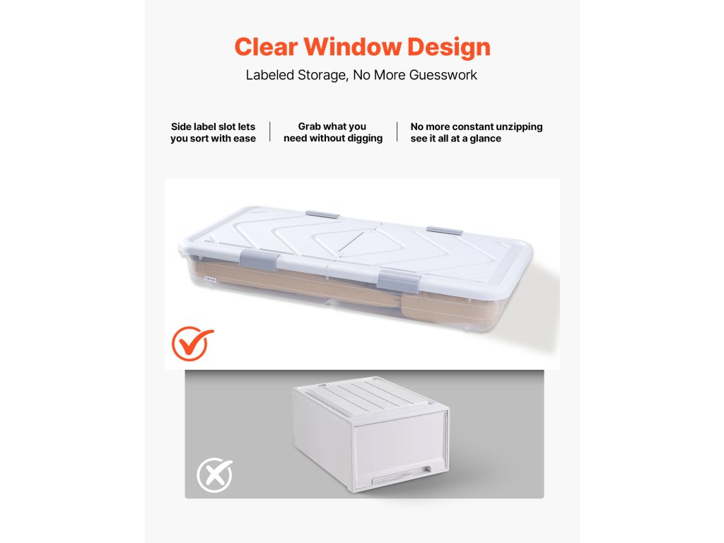 Ez az ágy alatti tároló elfér ágyak, kanapék, asztalok és bútorok alatt, és praktikus megoldást kínál a ruhák, cipők és játékok rendszerezésére.