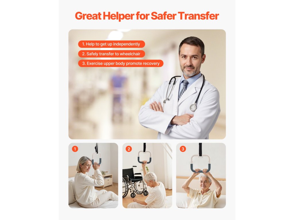 Ez a trapéz az ápolási környezetek széles skálájához készült, és stabil és megbízható támaszt nyújt kórházakban, ápolási otthonokban és otthoni ápolási létesítményekben történő használatra. Lehetővé teszi a felhasználók számára a biztonságos és önálló ülést, a kerekesszékbe való átülést és a pozícióváltást.