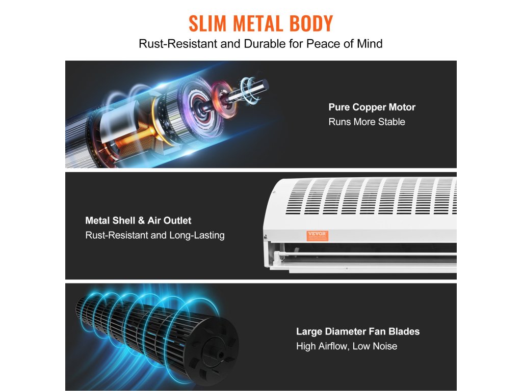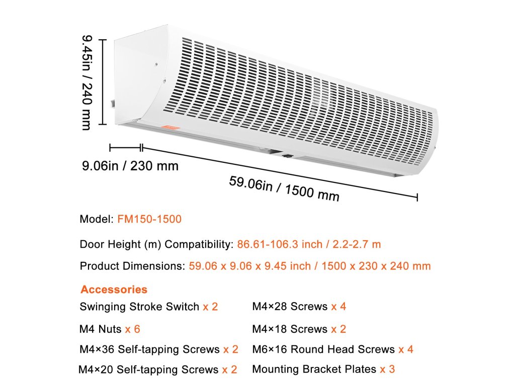 Ajtóba építhető légfüggöny 1,5 m, 3566 m³/h, 2 sebesség, falra szerelhető