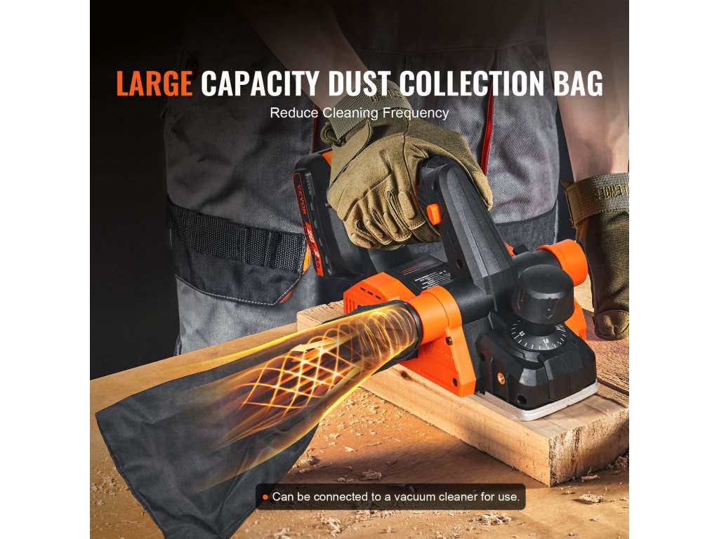 Az elektromos kézi gyalu kétoldali réses kialakítással rendelkezik a por eltávolítására, és a porzsák mindkét oldalra behelyezhető, így a porgyűjtés rugalmasabbá válik, és a munkakörnyezet mindig tiszta marad.