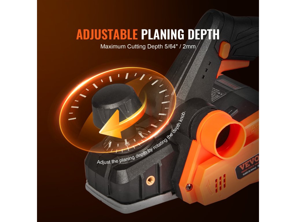 Az akkumulátoros elektromos kézi gyalu maximális vágási szélessége 3-1/4" (82,55 mm), maximális vágási mélysége pedig 5/64" (2 mm), ami nagy hatékonyságot és precíz vágást tesz lehetővé.