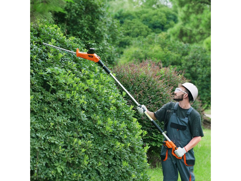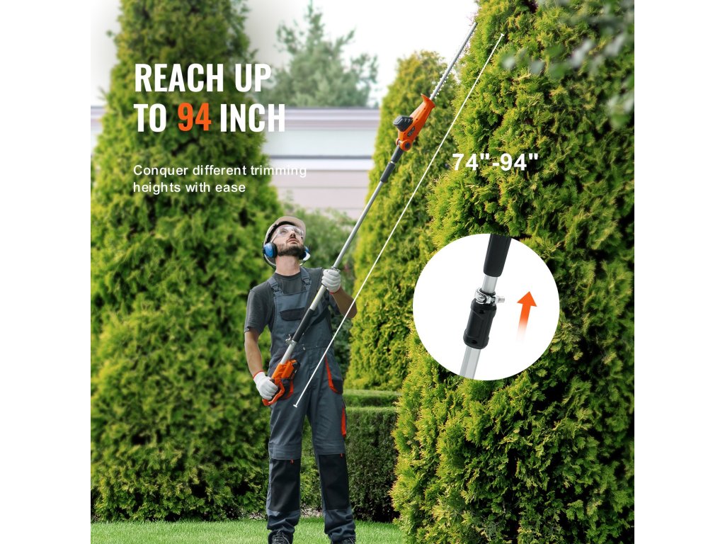 Akkumulátoros sövényvágóink 74 és 94 hüvelyk/188-239 cm között hosszabbíthatók, így könnyedén nyírhatja a lombot különböző magasságokban. Akár magas ágak nyírásáról, akár talajszinten történő nyírásról van szó, nincs szükség további szerelőszerszámokra. Egyszerűen csak húzza meg a két rudat a könnyű beállításhoz.