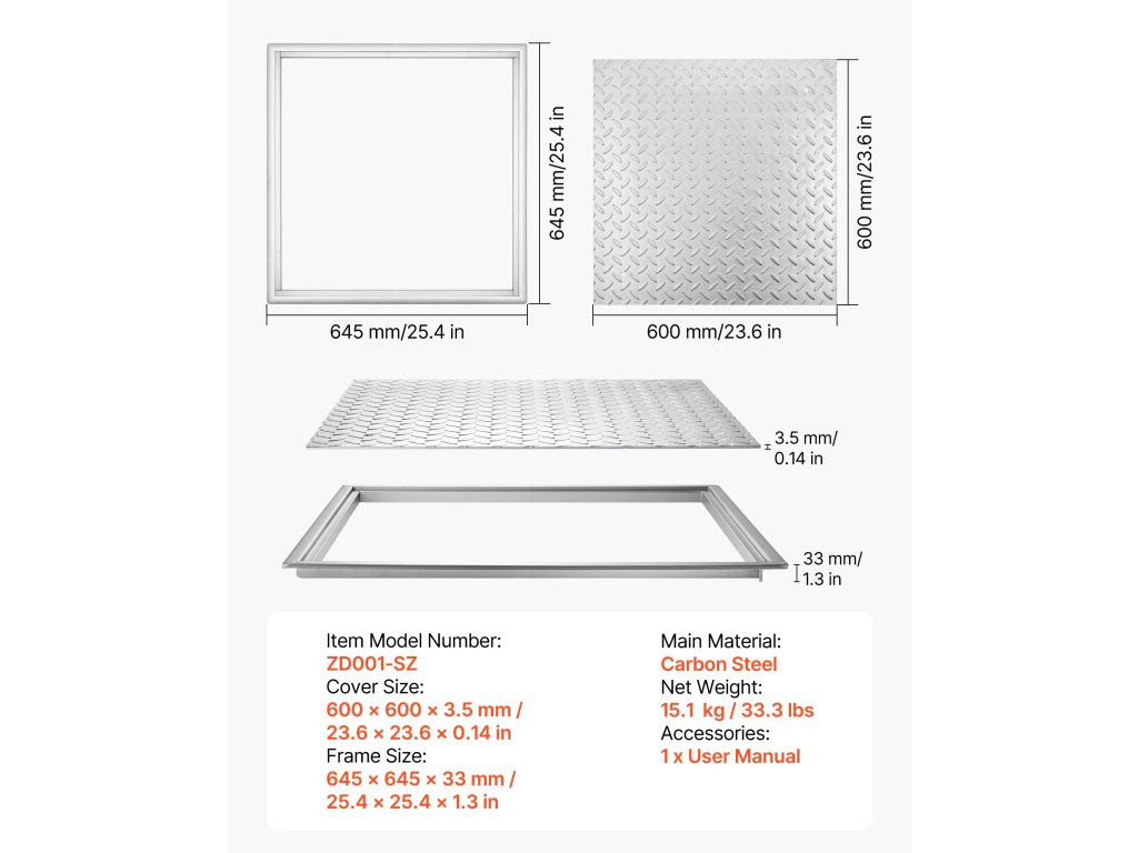 Ezt a négyzet alakú aknafedelet úgy tervezték, hogy illeszkedjen a legtöbb szabványos hozzáférési nyíláshoz. A teljes peremet hézagok és túlnyúlások nélkül fedi le, így biztosítva a könnyű szerelést és a tiszta, professzionális megjelenést.
