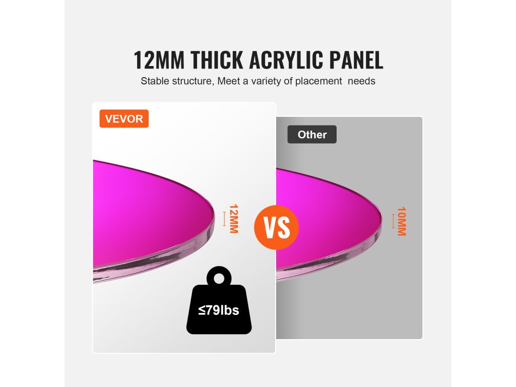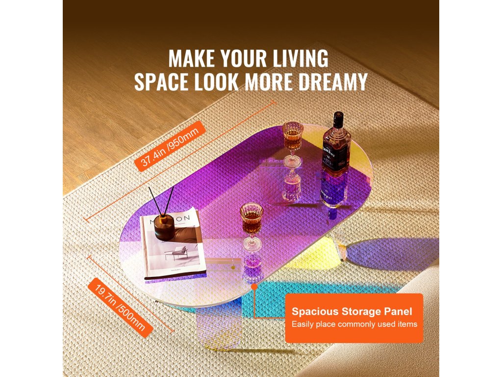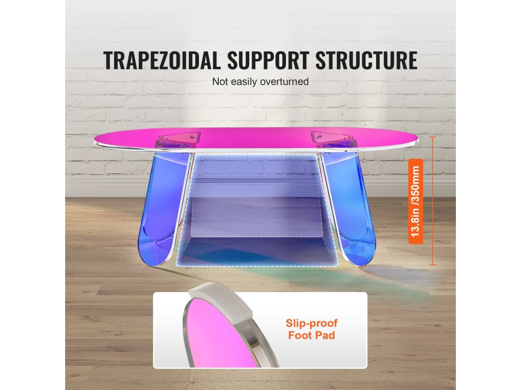 Színes akrilvégasztalunk fényben ragyog, amikor megvilágítják, álomszerű hangulatot teremtve. Természetes akril anyagból készült. Átlátszó, kristálytiszta fénye sokféle lakberendezési stílushoz illik. A 12 mm-es megerősített lemeznek köszönhetően fokozott teherbírást biztosít.