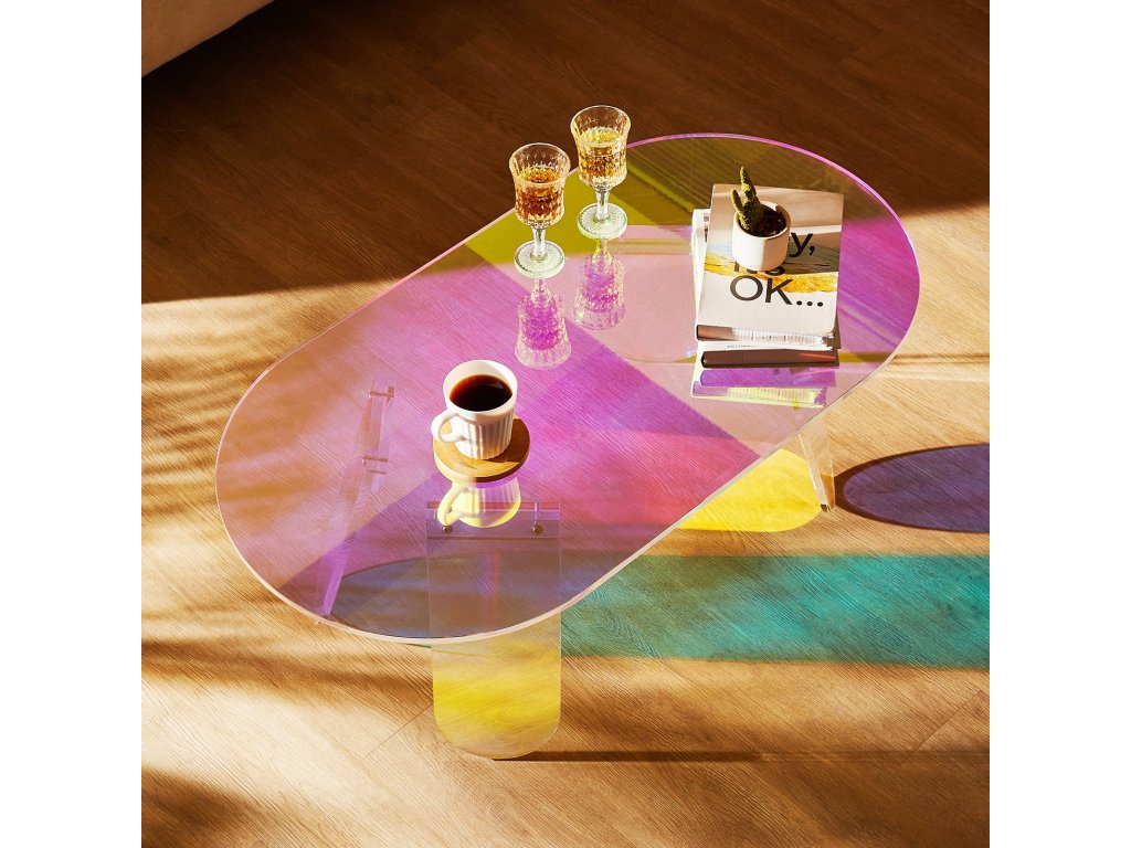 A természetes akril anyagból készült, irizáló akril dohányzóasztal lenyűgöző ütésállóságot biztosít, keménysége 16-szorosa a hagyományos edzett üvegének. Egyszerre ötvözi az esztétikai vonzerőt és a praktikumot.