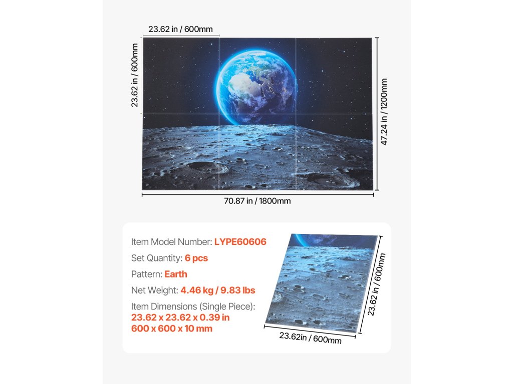 | A termék méretei (egy darab) | 600 x 600 x 10 mm / 23,62 x 23,62 x 23,62 x 0,39 inch |