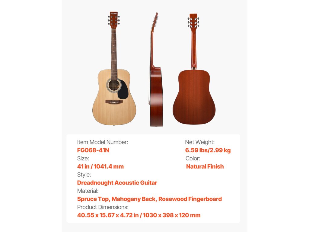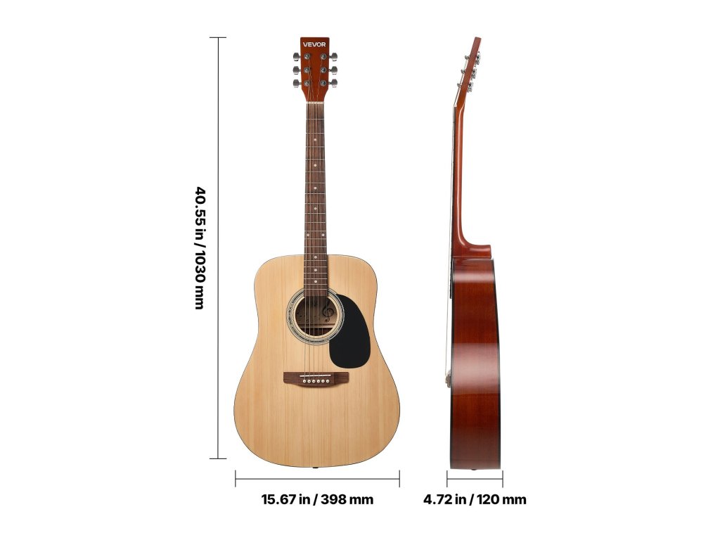Akusztikus dreadnought gitár 41 hüvelykes / 1041,4 mm-es natúr hangszedővel, puhatokkal