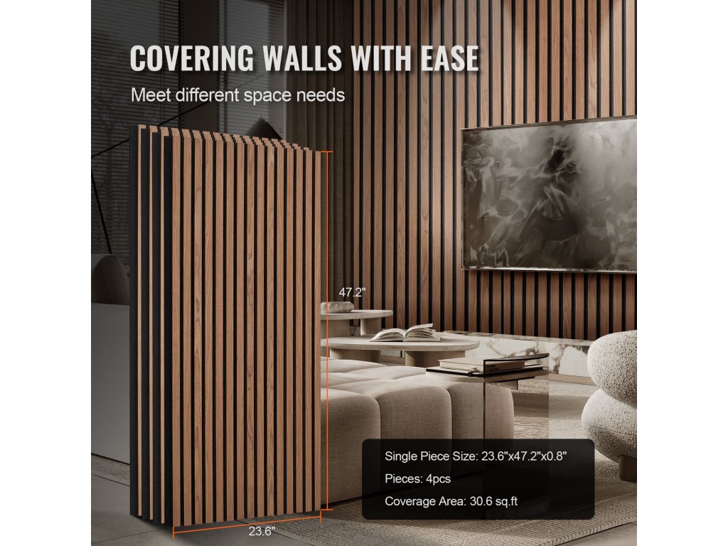 Akusztikus falécezett falpanelek, MDF, 23,6 × 47,2 hüvelyk, diófa
