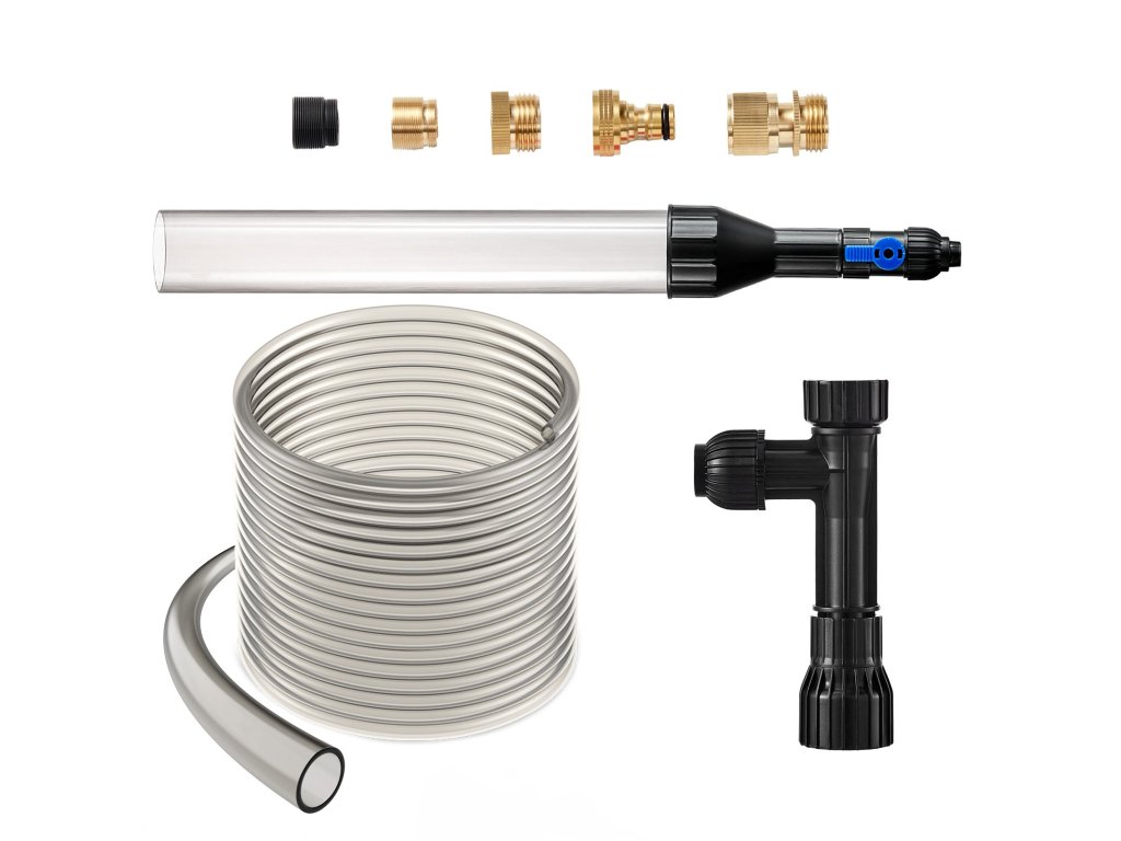 Akvárium szifon kavics vákuum PVC tömlő 50 láb, 3 sárgaréz adapter