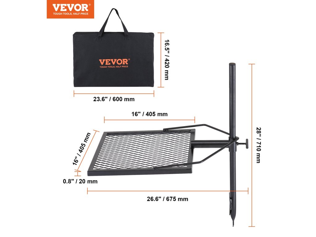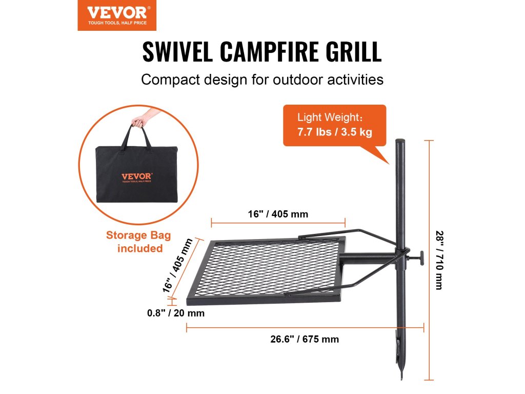 A tábortűzgrillhez tartozik egy rács és egy bármilyen talajba illeszthető rúd, így tábortűzhöz használhatja a kempingben, a hátsó udvaron vagy a parkban.