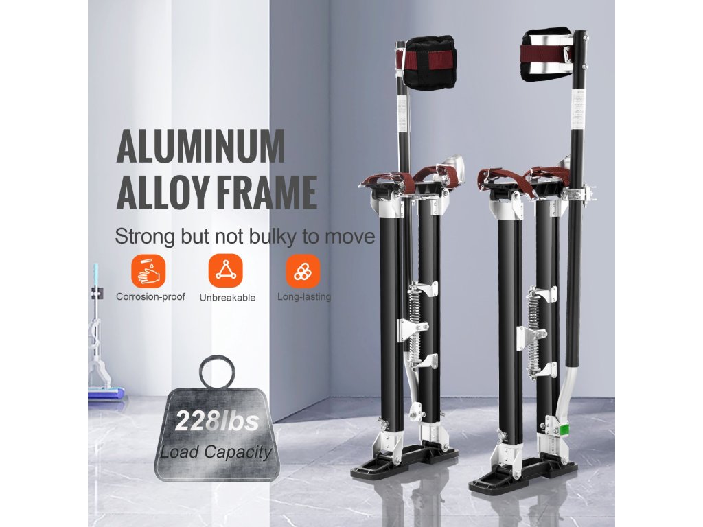 Chrániče VEVOR na sadrokartónové dosky sú vyrobené z pevnej hliníkovej zliatiny. Dokážu uniesť až 228 kg. Tieto chodúle sú odolné proti korózii a nedeformujú sa. Ich hliníková konštrukcia zaručuje dlhodobé používanie. Dvojité pružiny tlmiace nárazy udržiavajú rovnováhu. Vďaka tomu sa pri práci udržíte v stabilnej polohe. Gumové podstavce v spodnej časti zabraňujú pošmyknutiu a poškriabaniu. Pevná konštrukcia týchto chodúľ ponúka optimálnu stabilitu. Aj na miernom svahu sa budete cítiť bezpečne. Práve robustný rám zaručuje, že tieto chodúle ponúkajú optimálnu flexibilitu. Takže aj na občasnom svahu sa môžete cítiť bezpečne vďaka ich odolnosti. Vychutnajte si spoľahlivý výkon pri každej práci s týmito chôdami na sadrokartón.