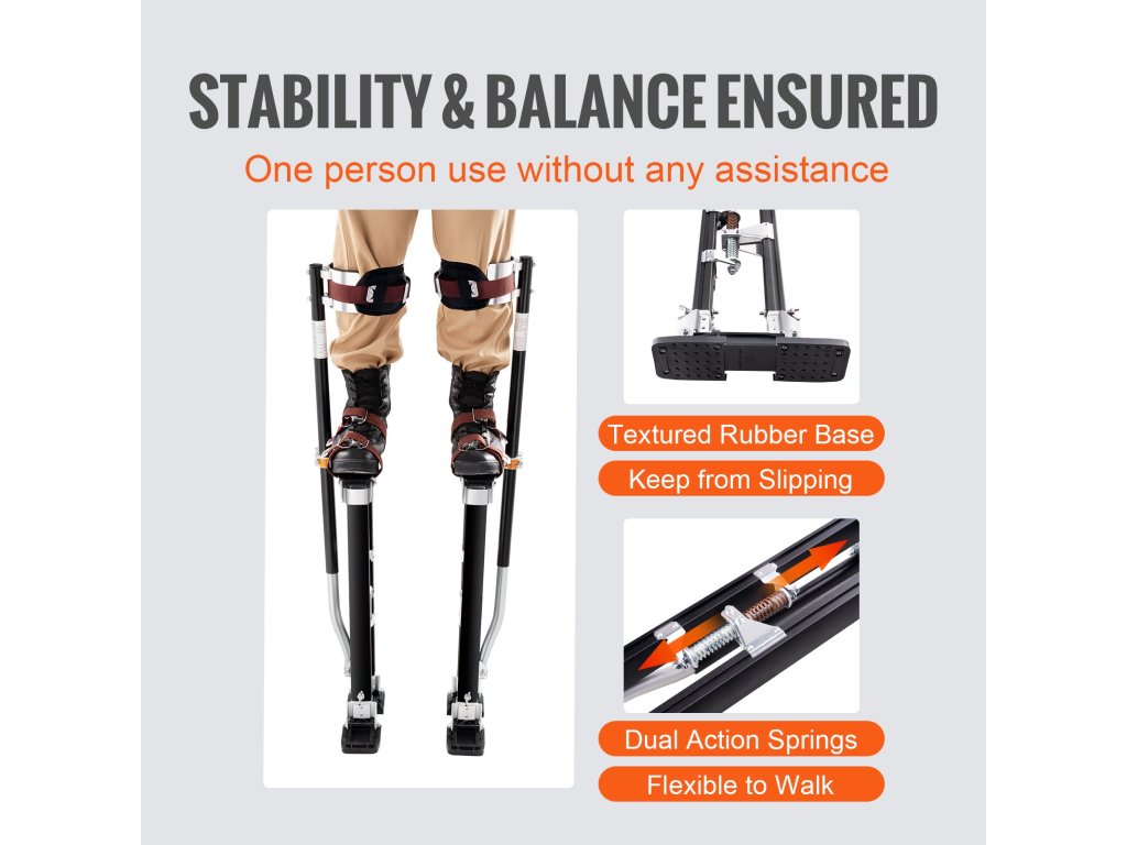 Nastaviteľné chôdze VEVOR na sadrokartónové dosky majú dvojité pružiny tlmiace nárazy. Tieto pružiny pomáhajú udržiavať rovnováhu pri chôdzi. Táto konštrukcia zlepšuje celkovú stabilitu chodúľ. Pružiny sa zameriavajú na celkovú stabilitu konštrukcie chôdze. Znižuje sa tak vplyv chôdze na nerovnom povrchu. To zabezpečuje plynulejší a kontrolovanejší pohyb. Konštrukcia je ideálna pre tých, ktorí pracujú na veľkých projektoch. Pružiny uľahčujú udržiavanie rovnováhy aj začiatočníkom. Na týchto maliarskych chodúľoch môžete chodiť s istotou. Ich vyvážená konštrukcia minimalizuje riziko pádu. Dvojité pružiny sú základným bezpečnostným prvkom.