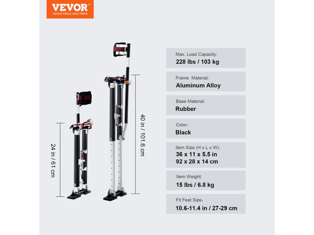 Chrániče VEVOR na sadrokartónové dosky sú ľahké. Dajú sa ľahko nastaviť. Vďaka funkciám rýchleho uvoľnenia je nastavenie rýchlejšie. To je užitočné najmä počas dlhých pracovných dní. Ľahká konštrukcia znižuje únavu. Výšku môžete ľahko meniť bez väčšej námahy. Táto funkcia je výhodná pri rýchlych prechodoch medzi jednotlivými úlohami. Jednoduché nastavenie šetrí čas a námahu, vďaka čomu sú tieto chodúle vhodnou voľbou. Ich ľahká konštrukcia neuberá na odolnosti. Využívajte výhody jednoduchosti a efektívnosti týchto štýlov.