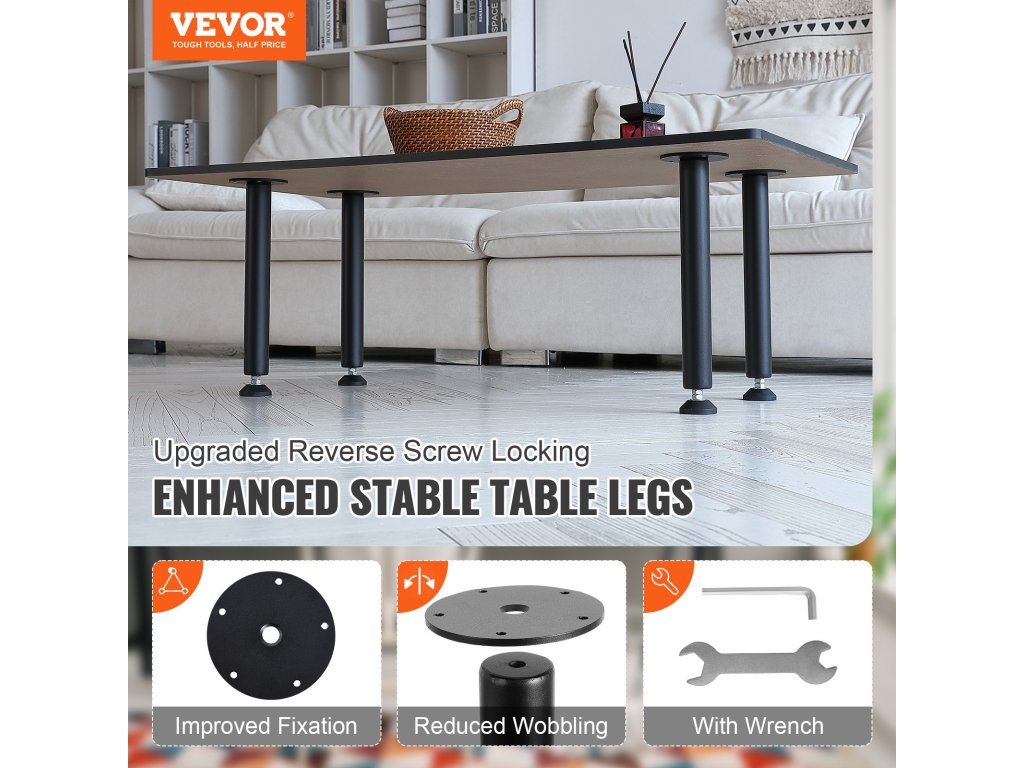 Univerzális asztallábaink különböző méretű asztallapokat vagy bútorokat, például kanapékat tudnak alátámasztani. Vastag tömör acélból készülnek, és a hegesztett rögzítőlemezeknek köszönhetően nagy teherbírást és tartósságot biztosítanak. Válassza a VEVOR asztallábakat a praktikus és megbízható bútorokhoz.