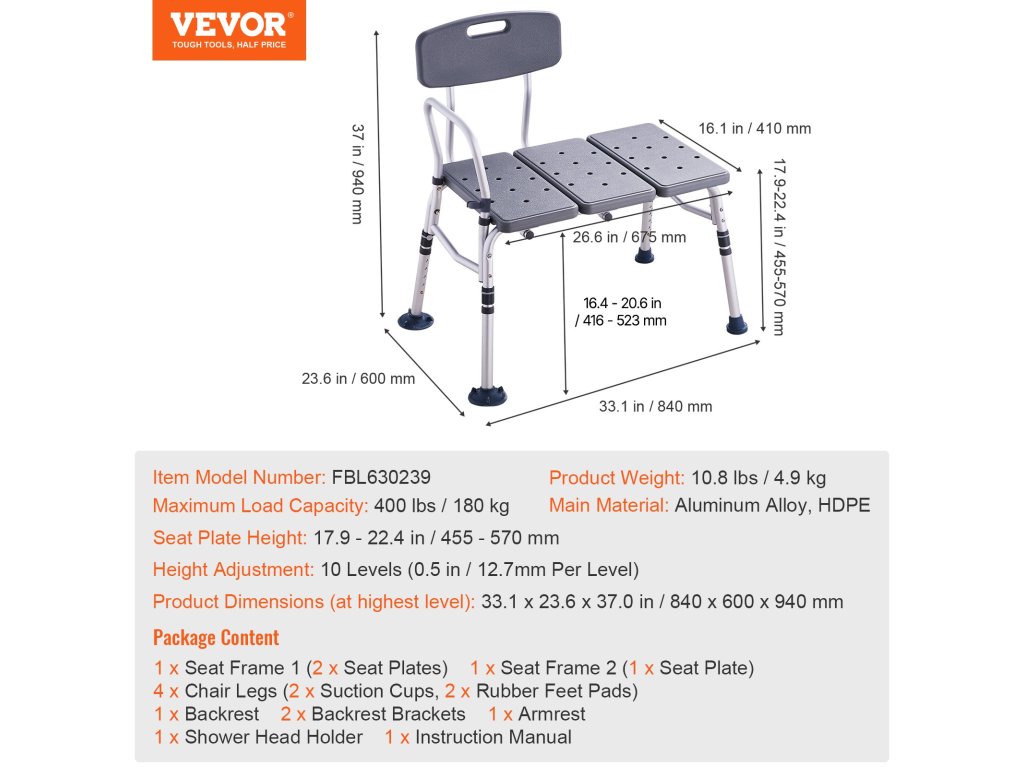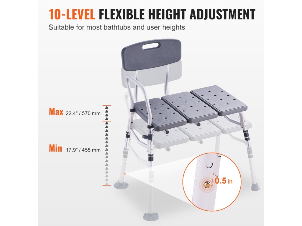 Biztosítsa a biztonságosabb és kényelmesebb tartózkodást a fürdőszobában a VEVOR kádtranszferpaddal. Ez az idősek, fogyatékkal élők és terhes nők számára ideális kádtranszferpad 10 fokozatban állítható magassággal, 400 kilós teherbírással és kétkezes háttámlával rendelkezik a maximális kényelem érdekében.