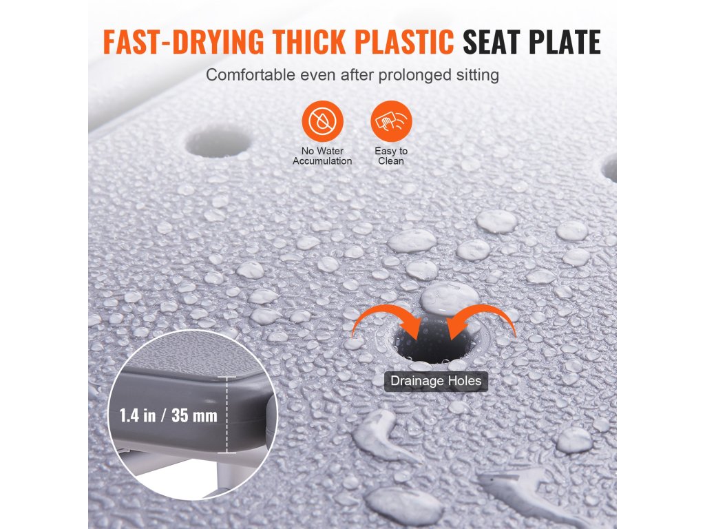 Dőljön hátra és pihenjen a hosszúkás, puha, 1,4 hüvelykes HDPE műanyag ülésen, amelyet a tartós kényelem érdekében terveztek. Több vízelvezető nyílással rendelkezik, így gyorsan szárad és higiénikus marad. A tisztítás problémamentes - csak törölje le minden használat után a gondtalan karbantartás érdekében.