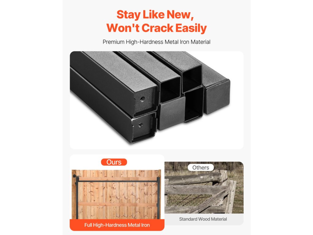 Ez az állítható kapukészlet nagy szilárdságú fémvasból készült, rozsda- és korrózióálló, és nem reped meg könnyen. Keménységét, vastagságát, oldószer- és sóködállóságát tesztelték, ellenáll a szélsőséges időjárási körülményeknek, miközben hosszú távon megőrzi tartósságát.