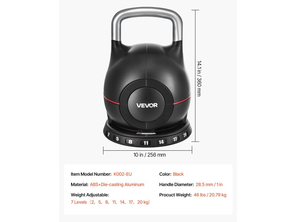 Állítható kettlebell 7 szinten 2,5-20 kg, alumínium és ABS, edzéshez