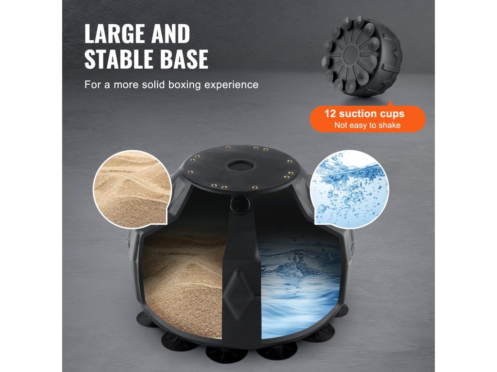 Az alapot vízzel vagy homokkal lehet feltölteni a stabilitás fenntartása érdekében. Az alján lévő tapadókorongok megakadályozzák a padló karcolását, és biztosítják a stabilitást a dobozolás során.