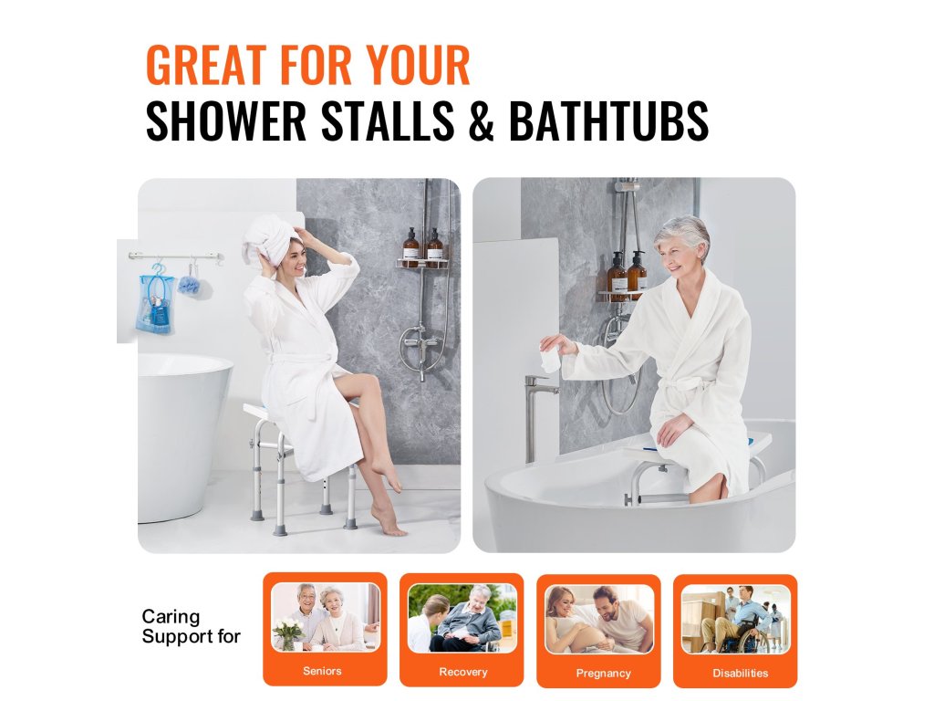 A többszintű magasságállításnak köszönhetően fürdőszékünk különböző magasságú embereknek is megfelel. A gombot a könnyű beállításhoz terveztük. A beépített fogantyúk nagyobb stabilitást biztosítanak Önnek, amikor zuhanyzás közben ráül. Az ívelt ülés a fenékhez igazodik, nagyobb kényelmet biztosítva.