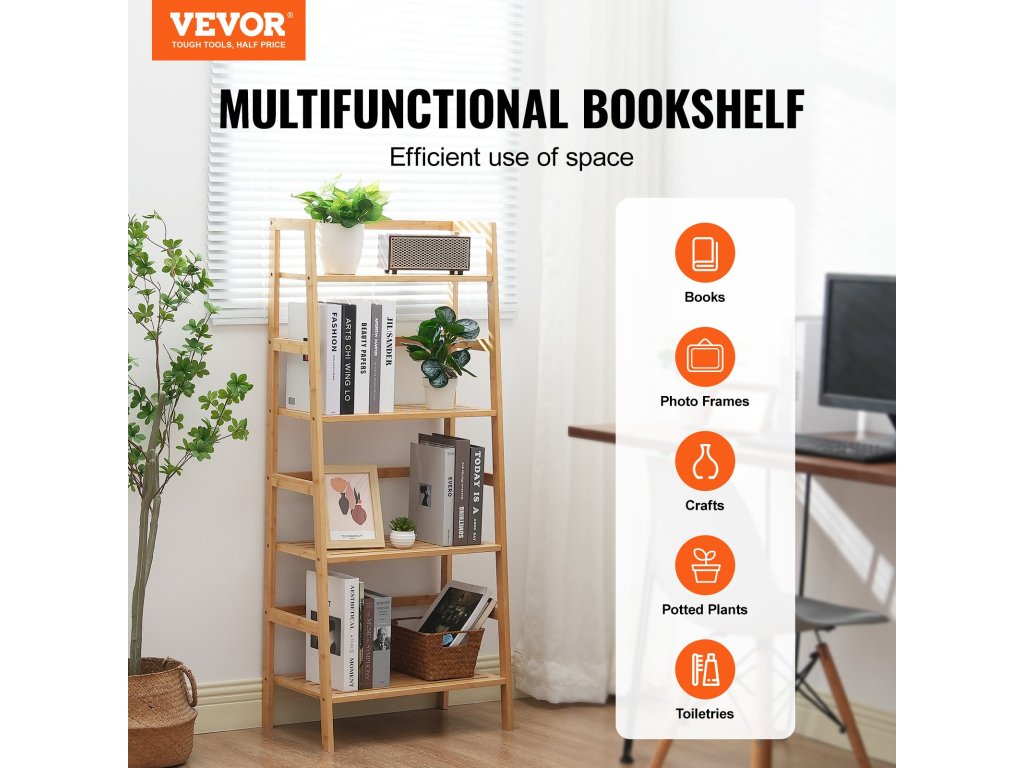 Ez a fából készült létrás polc nem csak könyvespolc - fürdőszobai polcként, növénytartóként és még sok minden másként is használható. Ideális nappaliba, hálószobába, konyhába és más helyiségekbe, ahol megfelel a különböző tárolási igényeknek.
