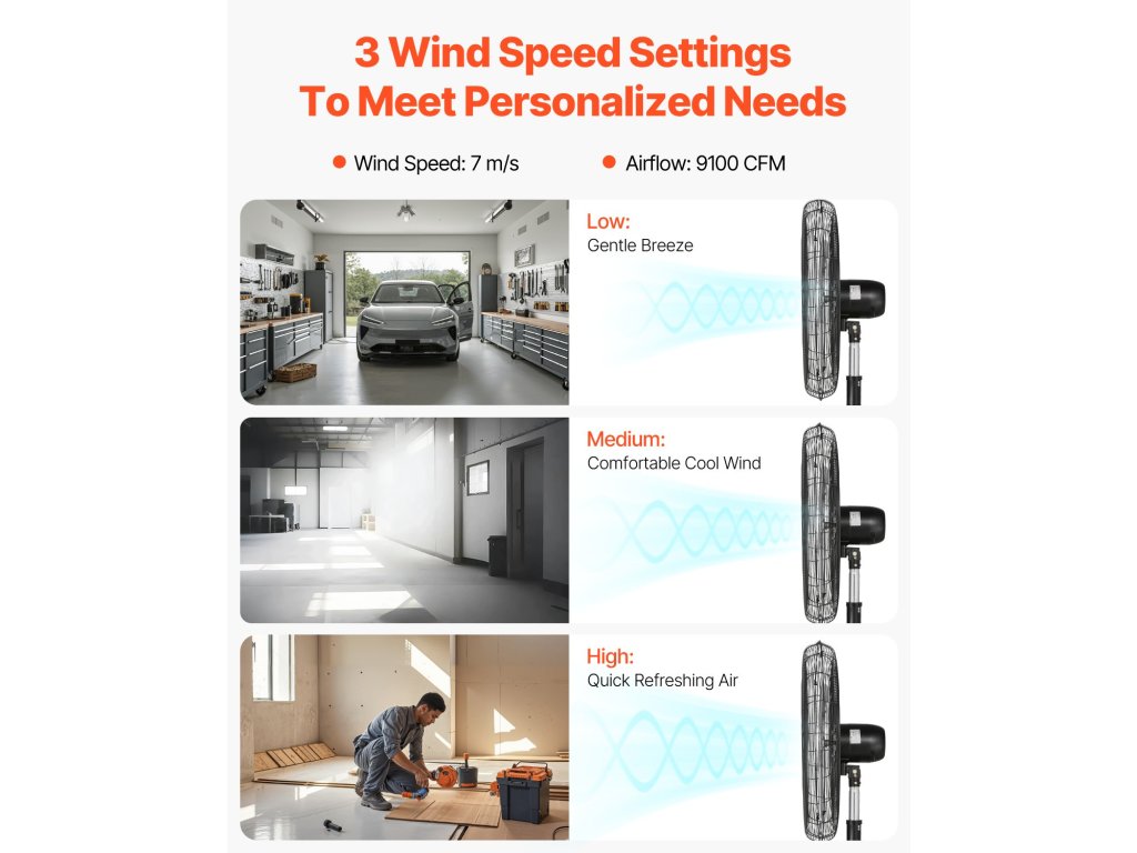 Ez az állványos ventilátor könnyű és könnyen mozgatható, így bármilyen térbe hűvöset varázsolhat. Legyen szó hálószobáról, nappaliról, irodáról vagy raktárról, élvezze a frissítő szellőt, bárhol is van.