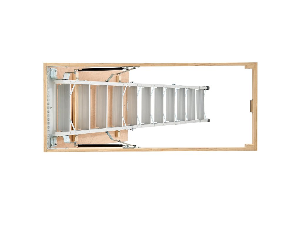 A padláslétra 2 szerelési magassággal rendelkezik (9,8-10,3 láb / 7,66-9,8 láb), fűrésszel rövidíthető, és 53,9 × 22,4 × 9,2 hüvelyk méretűre összehajtható. A kettős hidraulikus rudak biztosítják a problémamentes használatot. Húzórúddal, gyűrűvel és mágneses ajtóval érkezik a könnyű, rejtett összecsukáshoz. Alumínium testtel és 3,1 hüvelykes lépcsőfokokkal 375 fontot képes szállítani.