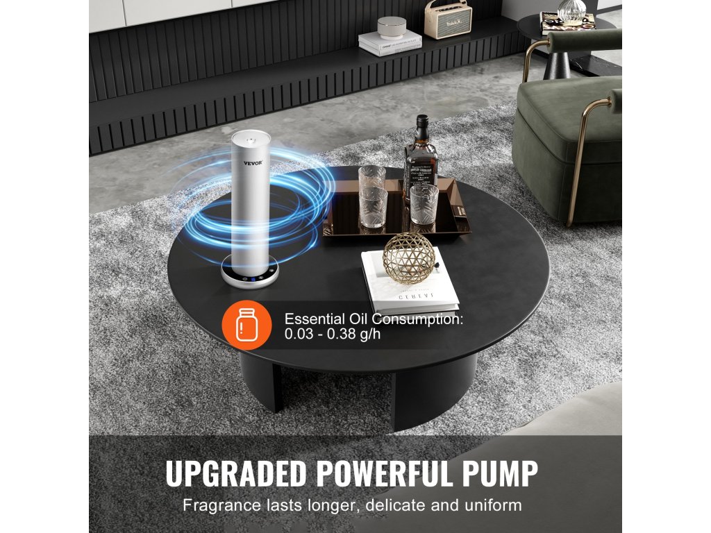 Fordítsd az illat használatát térbe! A VEVOR hideglevegős aromadiffúzor beépített, továbbfejlesztett, nagy teljesítményű pumpával rendelkezik, amely gyorsan kipréseli illóolajait a levegőbe; víz hozzáadása nélkül, tisztább illatot mutat, átalakítva a tér illatosításának élményét.
