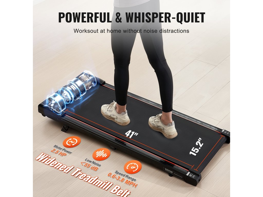 Asztal alá helyezhető futópad 2,5 LE, dőlésszög, 127 kg, bluetooth