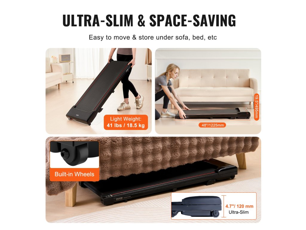 Futópadunk könnyen tárolható és szállítható. Könnyedén elhelyezheti a bútorok, például a kanapé vagy az ágy alatt. A beépített kerekek tovább fokozzák a hordozhatóságot, így szükség szerint kényelmesen mozgathatja.