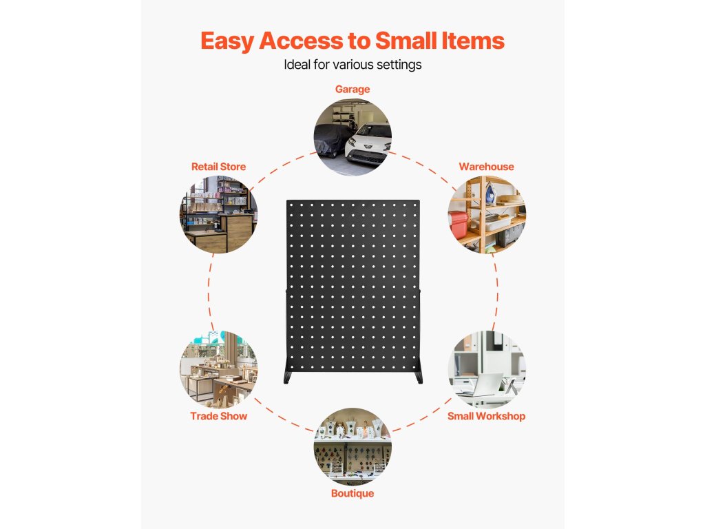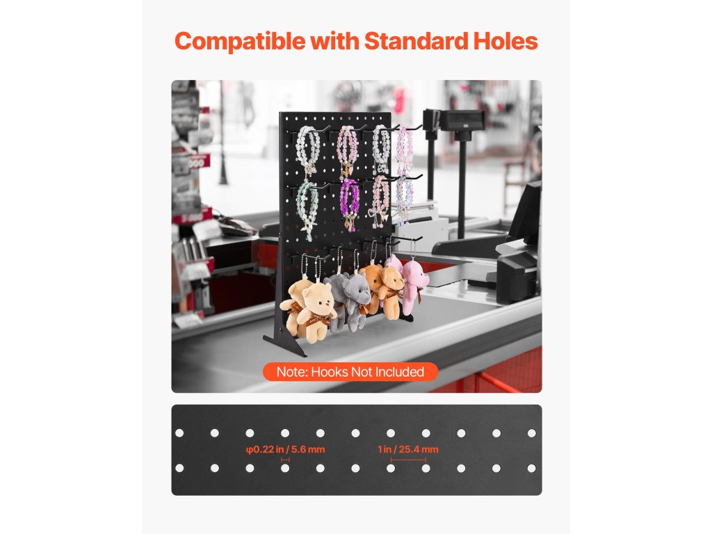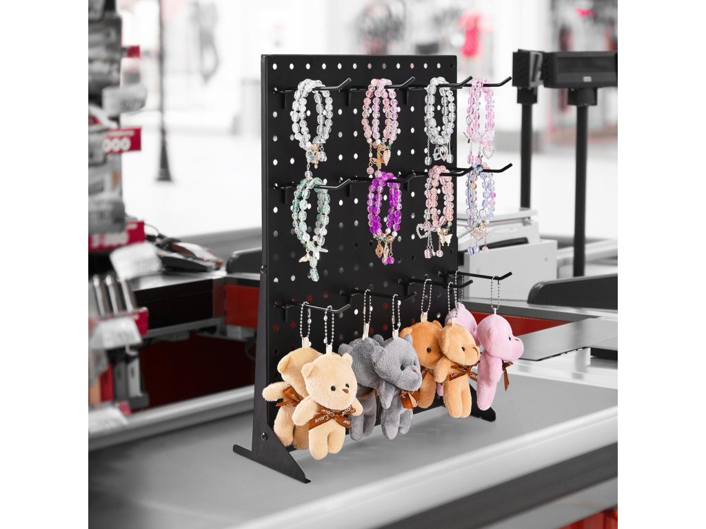 Asztali lyukacsos fali kiegészítő állvány 43×33 cm, acél, 4 db, fekete