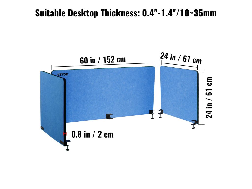 Asztali paraván 60'' 3 részes akusztikus bilincs sötétkék asztalhoz