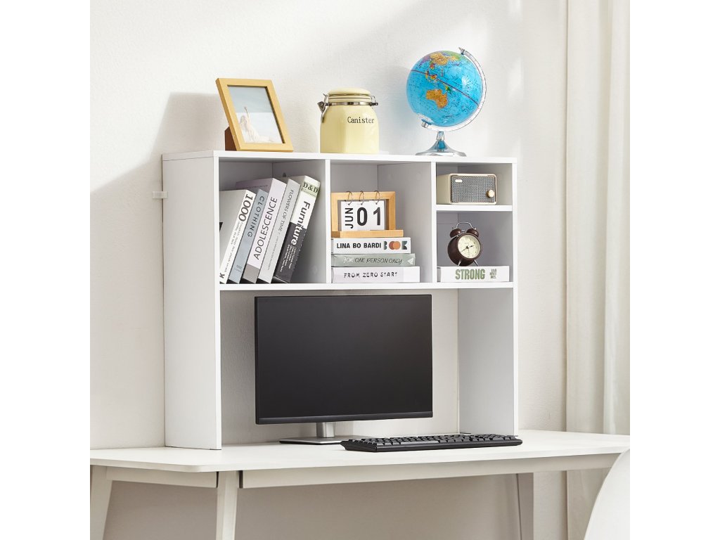 A könyvek, irodai kellékek és egyebek rendszerezésére szolgáló több rekesszel felszerelt íróasztal-polcsín segít rendezett munkaterületet kialakítani és növeli a termelékenységet.